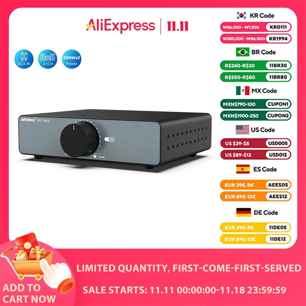 AIYIMA A07 MAX TPA3255 Audio Power Amplifier 2.0 Stereo Amplify 300Wx2 PBTL Mono Sound Amplifier 600W Home Speaker Amplificador